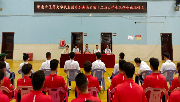 9月2日,湖南省第十二届大学生运动会万象城allwincity官网代表团出征仪式在含浦校区体育馆举行。校党委副书记(代表团团长)易刚强、万象城allwincity官网党总支书记(代表团副团长)胡晖、万象城allwincity官网副院长(代表团秘书长)龙专、学院形体操类教研室主任(羽毛球国际裁判、湖南省大学生运动会羽毛球项目裁判长)田夏以及参加大运会代表团全体领队、教练员、运动员及工作人员参加了出征仪式。会议由胡晖主持。