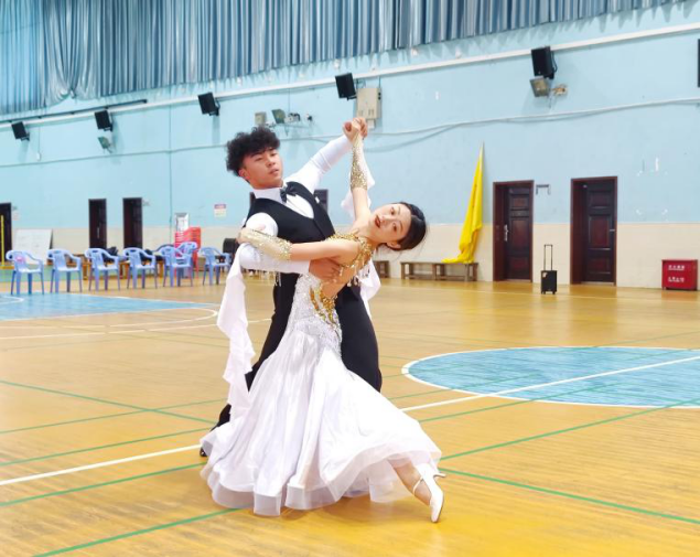 随着音乐响起,体育舞蹈队的四名参赛队员用身体的律动展现了对四段不同风格音乐的理解,完成对摩登舞华尔兹、慢三、慢四、探戈舞曲的演绎。这既是训练阶段的总结也是赛前的热身,流畅的舞步和熟练的技巧动作为他们赢得了热烈的掌声。随后全体与会人员起立奏唱国歌。龙专副院长作代表团参赛准备情况汇报,运动员代表、教练员代表分别宣誓发言。