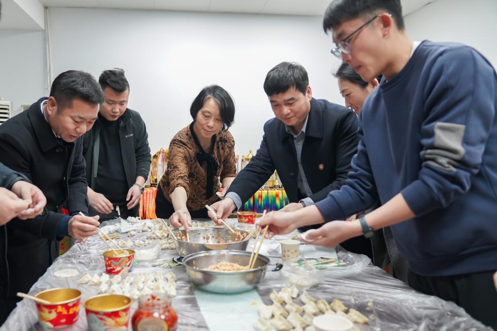 黄邓军老师准备饺子馅,周奕晟老师准备饺子皮,申忠华和赵云伟两位老师负责掌握火候煮饺子,学院全体男教师一同参与,以这种独特的方式为广大女职工提前送上节日的祝福。