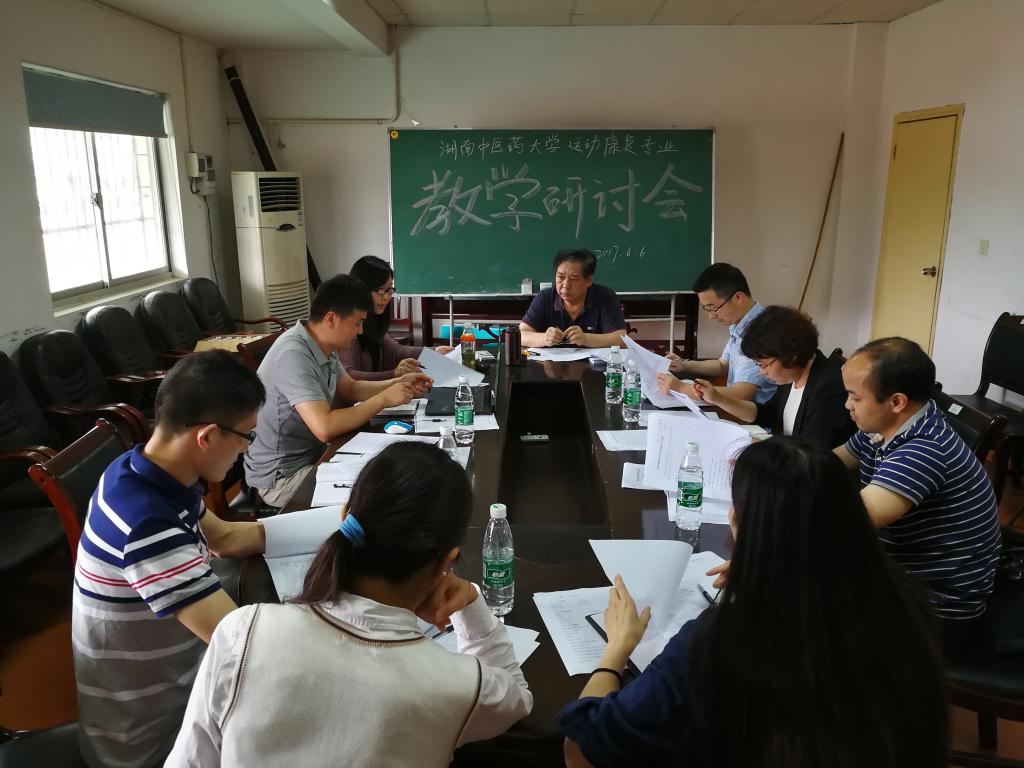 2017年6月6日,万象城运动康复教研室召开运动康复专业2017-2018(1)学期教学计划讨论会。会议由张泓副院长主持,邀请到了康复医学教研室的曾序求副教授、谭洁副教授、艾坤副教授进行指导与讨论,万象城运动康复教研室张建佳教授、殷宏亮副教授、胡思远老师、祁芳老师、秦爽老师、许明老师一同出席会议。
