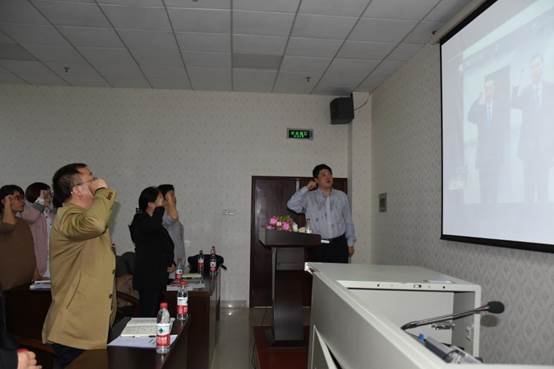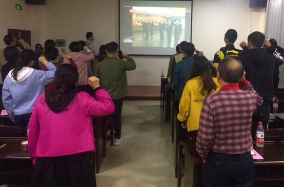 党课结束之际,熊校长带领全体党员同志,跟随习近平总书记,在中共一大旧址展厅内的视频背景声中,重温入党誓词。