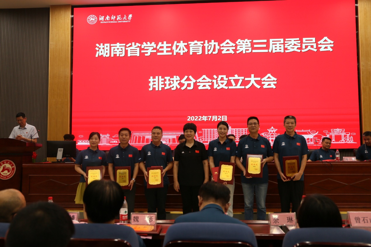 2022年7月2日,湖南省学生体育协会第三届委员会排球分会设立大会在湖南师范大学体育学院顺利召开。万象城球类教研室副主任唐磊被聘为竞赛裁判部副主任;万象城副院长龙专被聘为排球分会副会长;万象城当选为副会长单位。