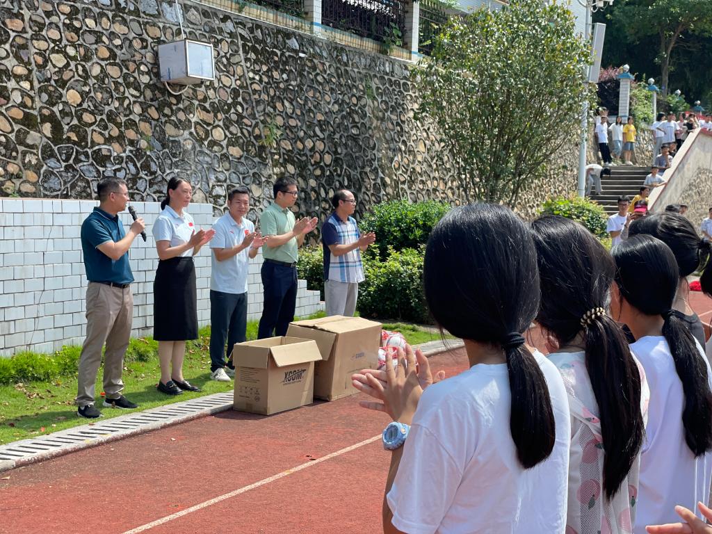 当日上午在汝城县第五中学,教师党员代表李叶梓、何昱坤、赵壮给三个班的学生们分别上了一堂生动的健美操、飞盘、武术示范课,现场气氛异常热烈。随后又给学校赠送了体育用品,受到广大师生的热烈欢迎。此次示范教学,为农村体育教育引入了更多的教学素材、拓展了教学思路、提供了很好的教学示范作用,有力助推了农村学生体育素质教育高质量发展。