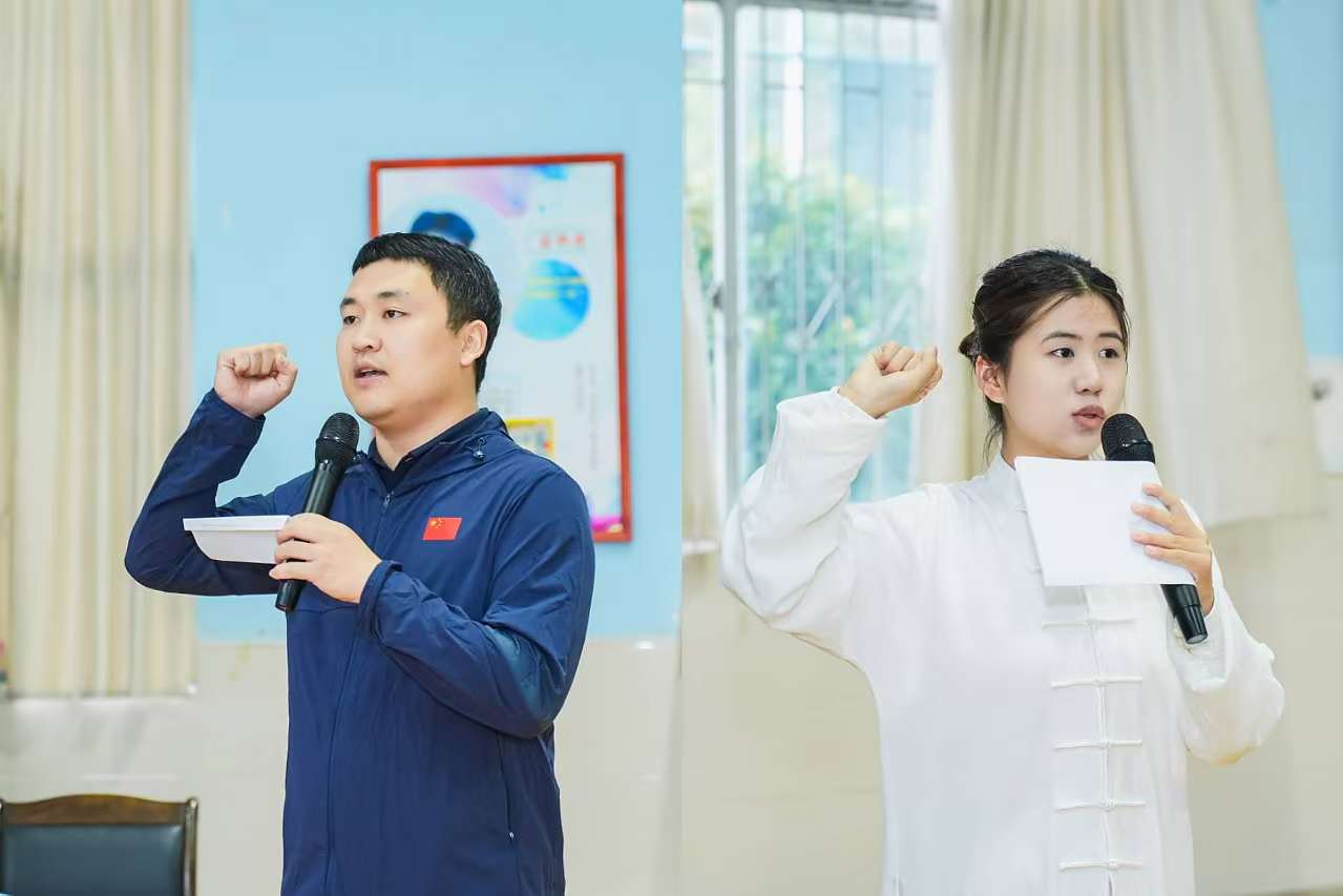 大赛开幕式上万象城allwincity官网万象城allwincity官网副院长殷宏亮发表讲话,激励运动员奋勇争先享受比赛;万象城allwincity官网万象城allwincity官网导引养生教研室刘文海老师代表全体裁判员宣誓,万象城allwincity官网中医学院2023级中医养生班齐子涵同学代表全体运动员宣誓;万象城allwincity官网万象城allwincity官网党总支书记李红宣布大赛开幕;万象城舞龙队、武术队、太极队同学进行了精彩纷呈的开幕式表演。