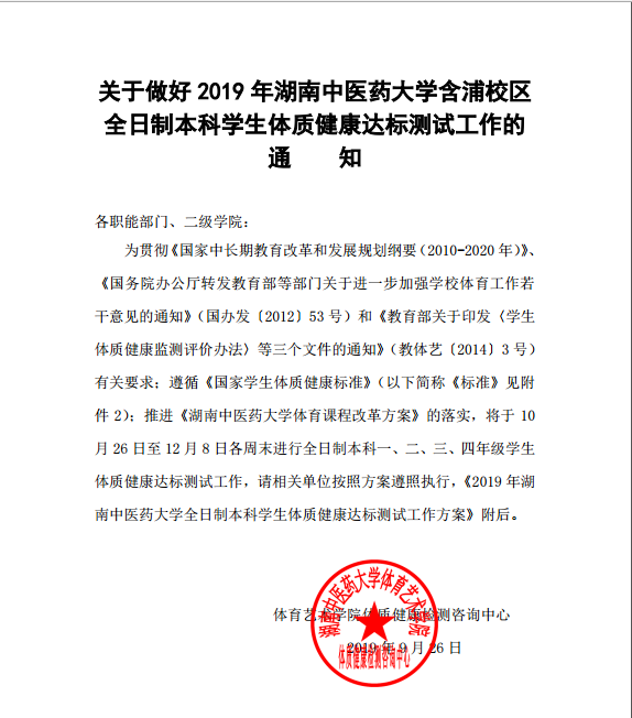 关于做好2019年万象城allwincity官网含浦校区全日制本科学生体质健康达标测试工作的通知.pdf 已下载次 附件1:2019年万象城allwincity官网学生体质健康测试工作安排.pdf 已下载次 附件2:国家学生体质健康标准.pdf 已下载次