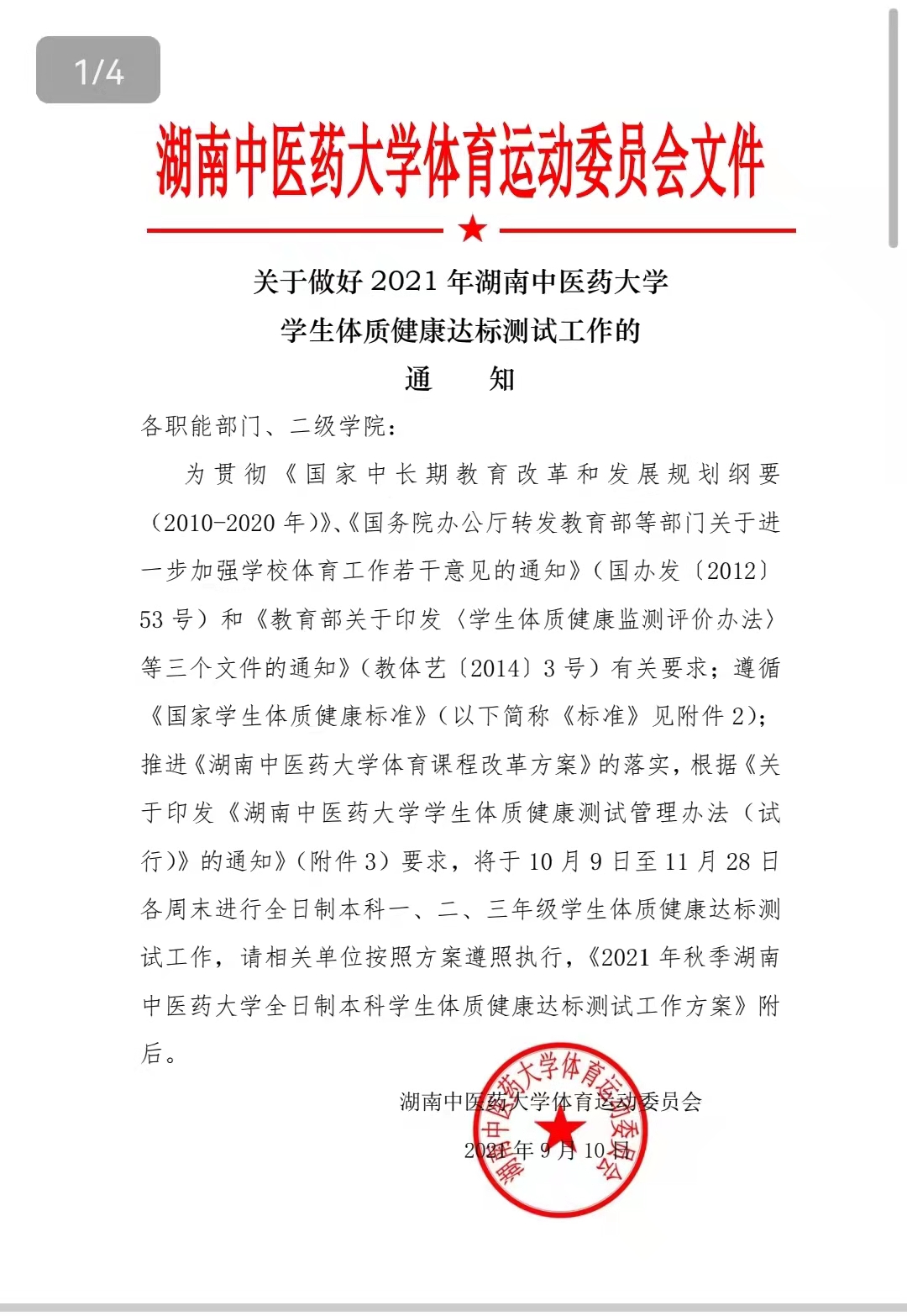 通知方案:关于做好2021年秋季万象城allwincity官网全日制本科学生体质健康达标测试工作的通知.pdf 已下载次 附件1:2021年秋季万象城allwincity官网学生体质健康达标测试安排通知.pdf 已下载次 附件2:国家学生体质健康标准(2014年修订)(1).docx 已下载次 附件3:关于印发《万象城allwincity官网学生体质健康测试管理办法(试行)》的通知.pdf 已下载次 缓测申请表.doc 已下载次 免测申请表 .doc 已下载次