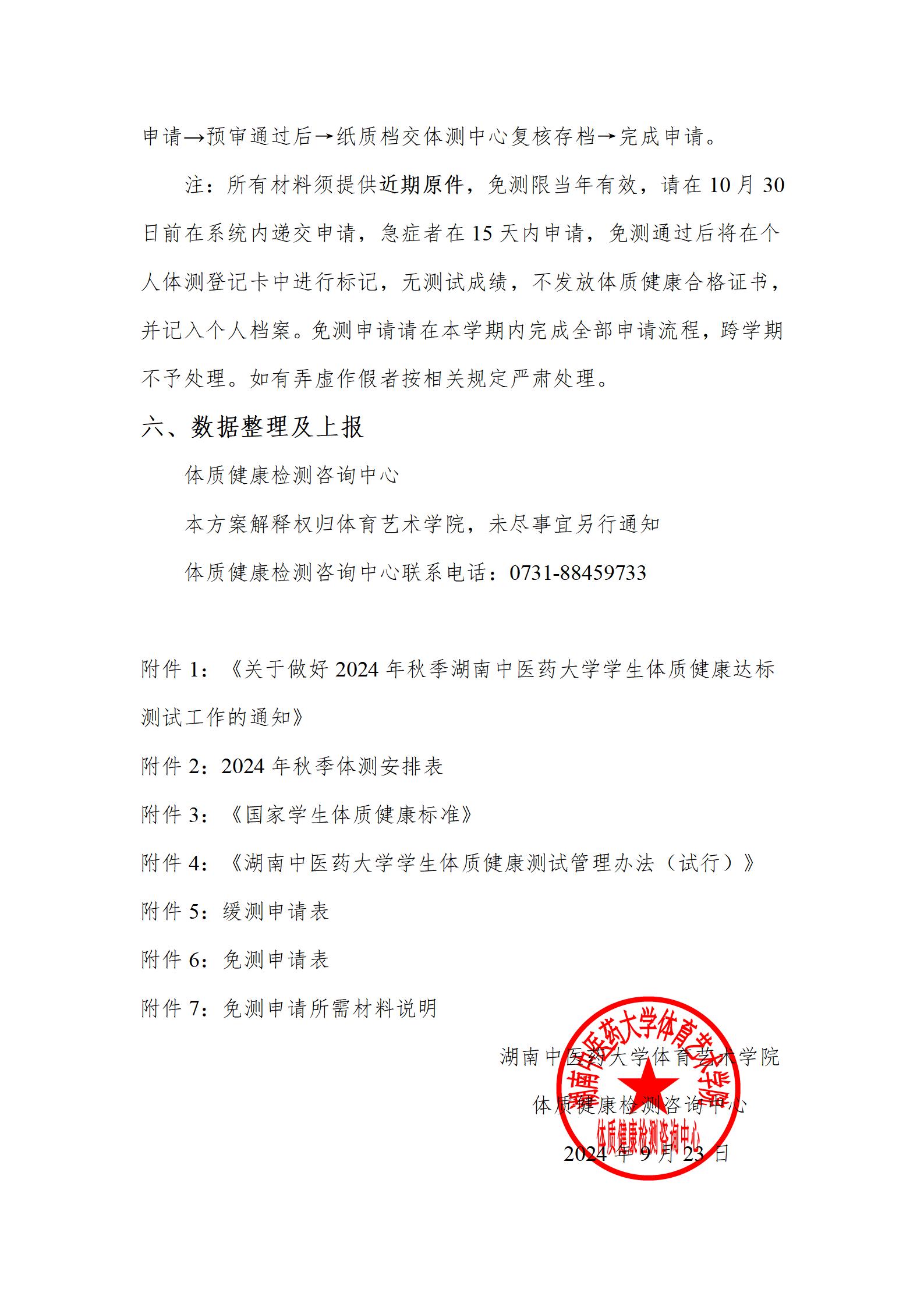 附件2:2024年秋季体测安排表.xlsx 已下载次 附件1:关于做好2024年秋季万象城allwincity官网学生体质健康达标测试工作的通知.pdf 已下载次 附件3:国家学生体质健康标准(2014年修订).docx 已下载次 附件4:《万象城allwincity官网学生体质健康测试管理办法(试行)》.pdf 已下载次 附件5:缓测申请表.doc 已下载次 附件6:免测申请表.doc 已下载次 附件7:免测申请所需材料说明.pdf 已下载次