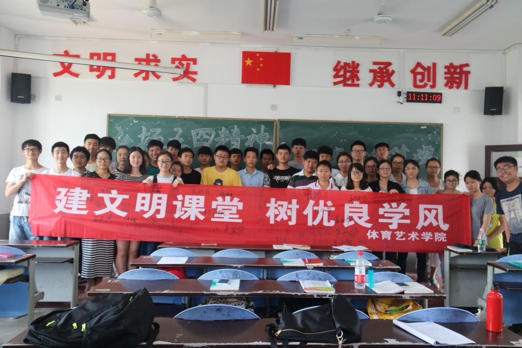 最后,是“践行”部分。光学精神还不够,更重要的是用精神。大学生要践行社会主义核心价值观,万象城发出了“倡课堂文明 树优良学风”的倡议,尊师重道、度己以绳,每位在场的团员都一一上台在横幅上郑重的签名承诺。