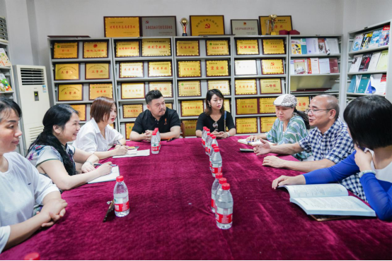 考察学习队伍第二站到江西中医药大学人文学院,学院党委书记张广海和音乐治疗教研室主任等参加了座谈会,会上就公共艺术课程的改革、音乐治疗专业的组建进行了深度交流。