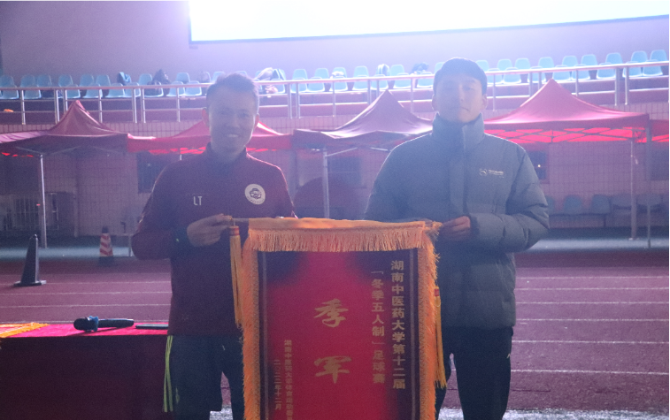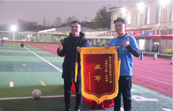 党政办公室副主任王召亿老师为医学院A队颁发亚军奖杯及锦旗