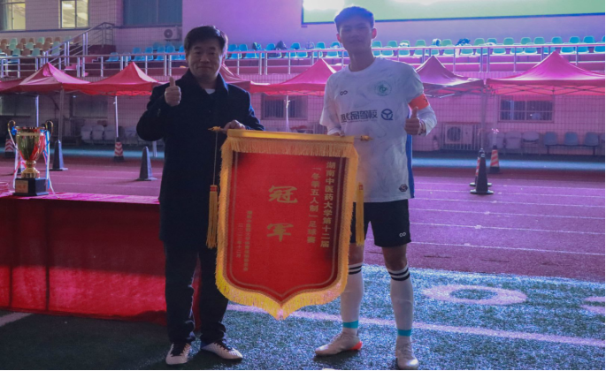 药学院王炜院长为中医学院A队颁发冠军奖杯及锦旗