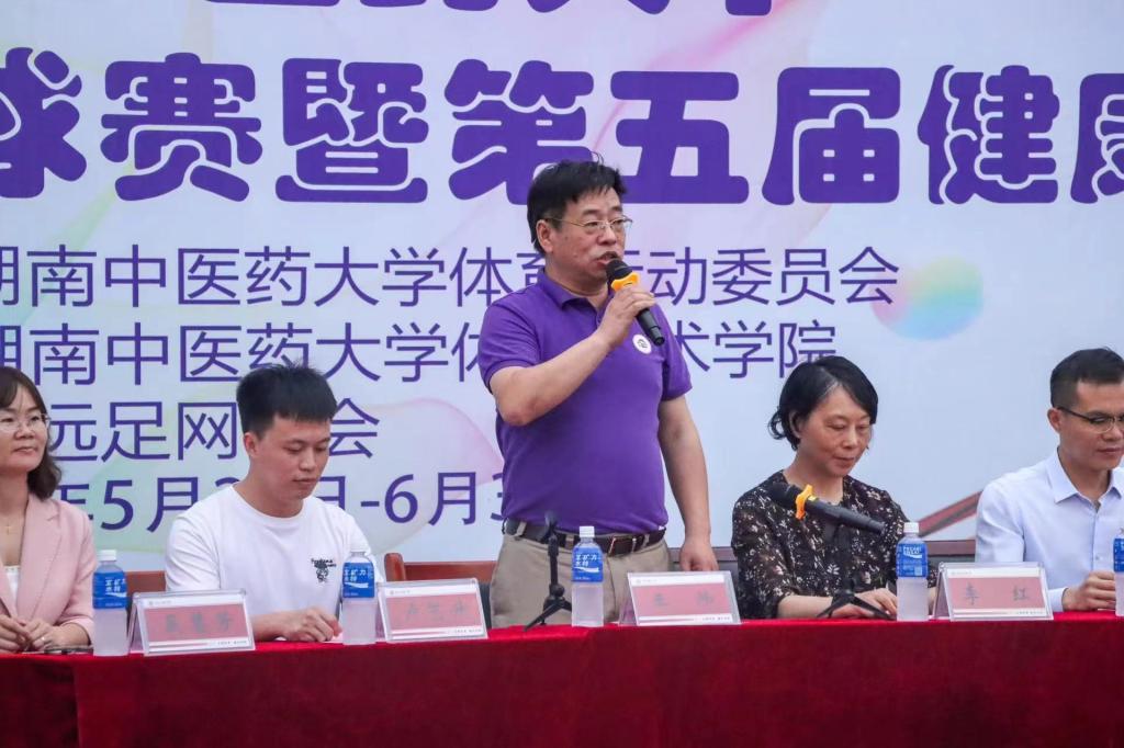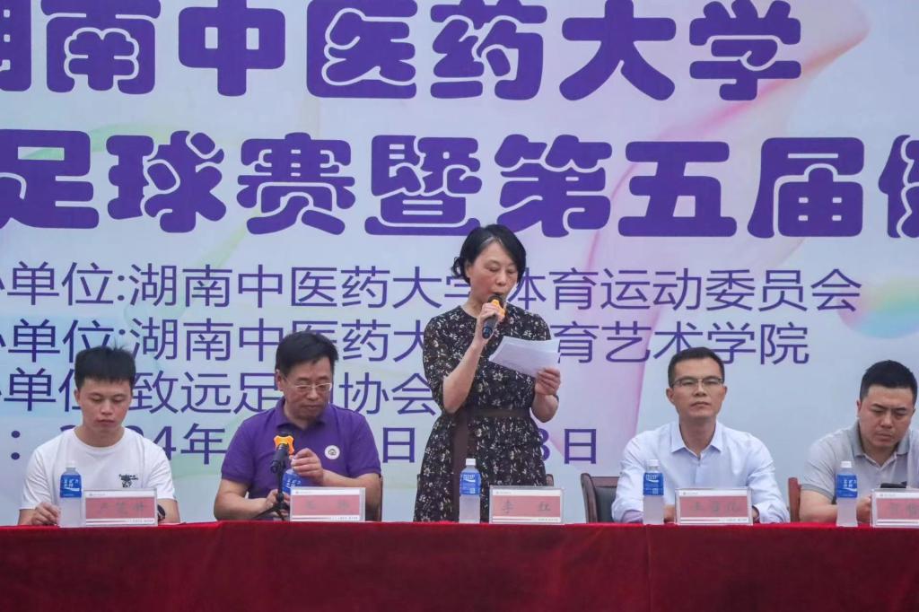 2024年5月20日下午,由万象城allwincity官网体育运动委员会主办的万象城第十七届“湘杏杯”足球赛暨第五届“健康活力”大赛在含浦校区体育场拉开序幕。药学院院长王炜、学生工作部副部长王召亿、万象城allwincity官网党总支书记李红、副院长龙专以及各学院分管学生工作的副书记出席开幕式。