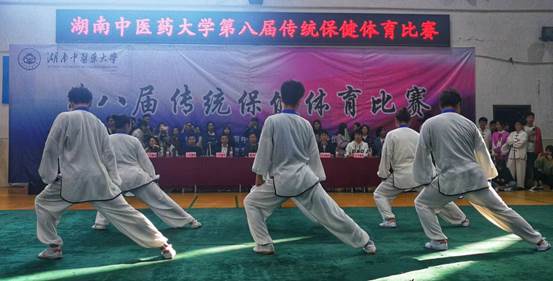 本届传统保健体育比赛全校10支队伍240余人参赛,包括导引养生类、武术类和竞艺类三大项,涵盖易筋经、五禽戏、马王堆导引术、八段锦、太极拳、三路长拳等比赛项目。纵观全天的比赛,每一位参赛运动员信心十足,顽强拼搏,积极展示了“青春正能量”的风采,